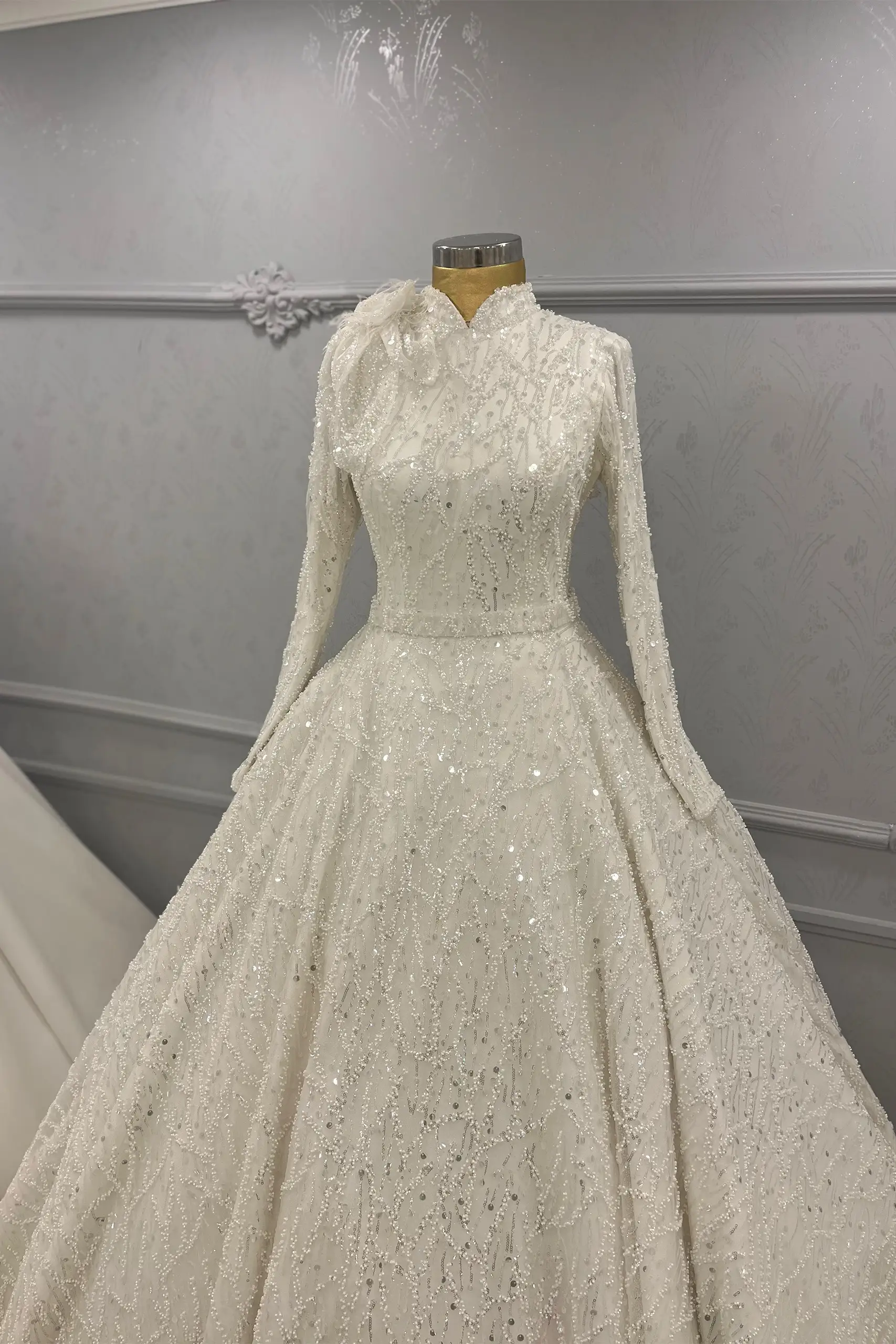 Boyun Detaylı Prenses Model Tesettür Gelinlik