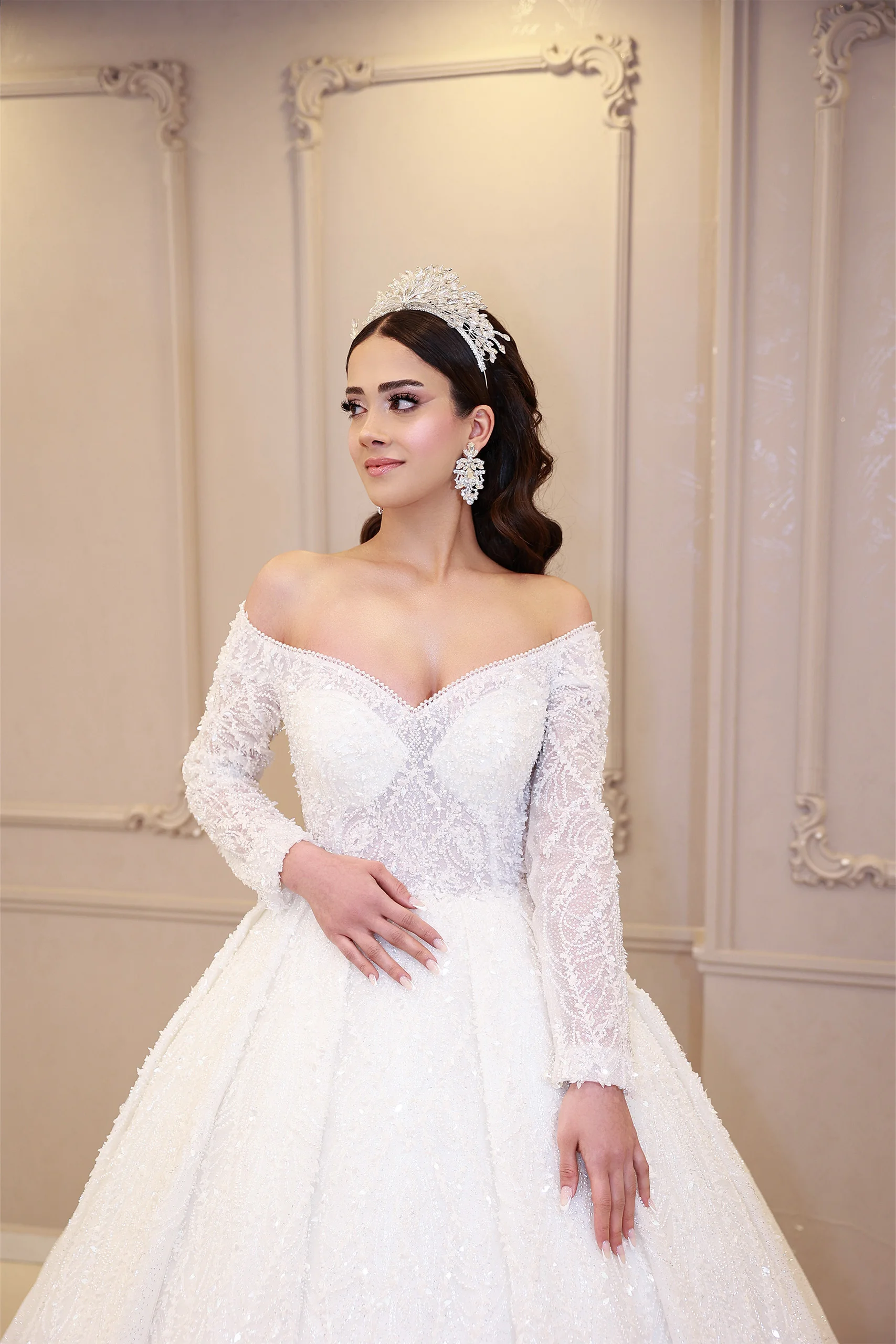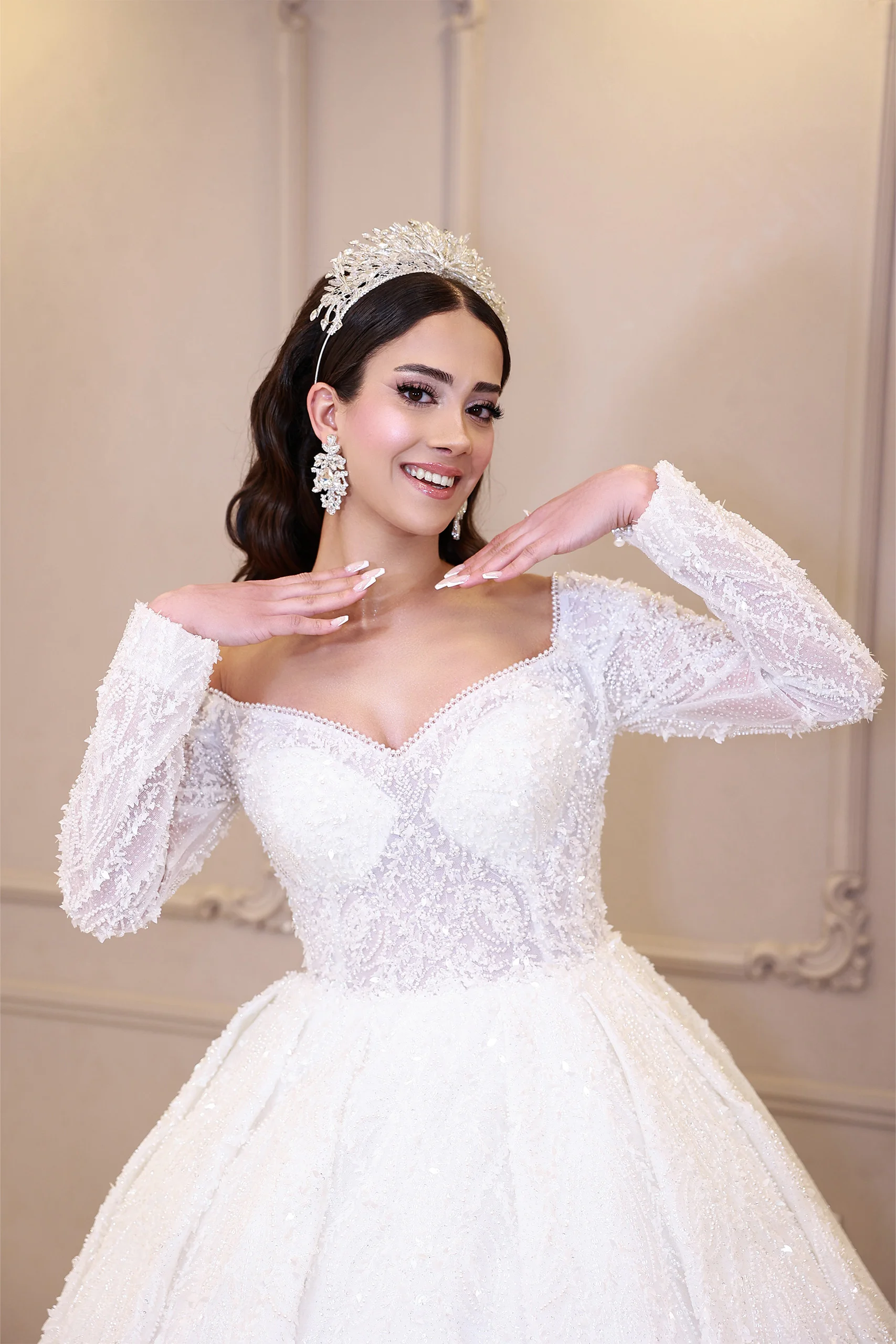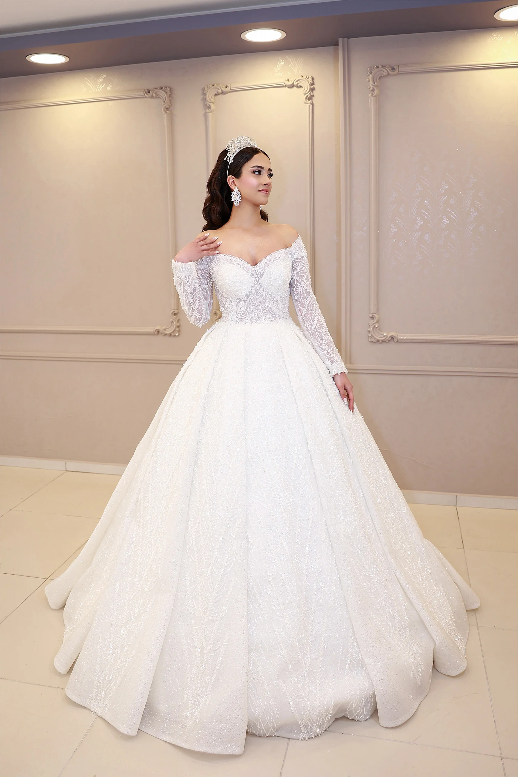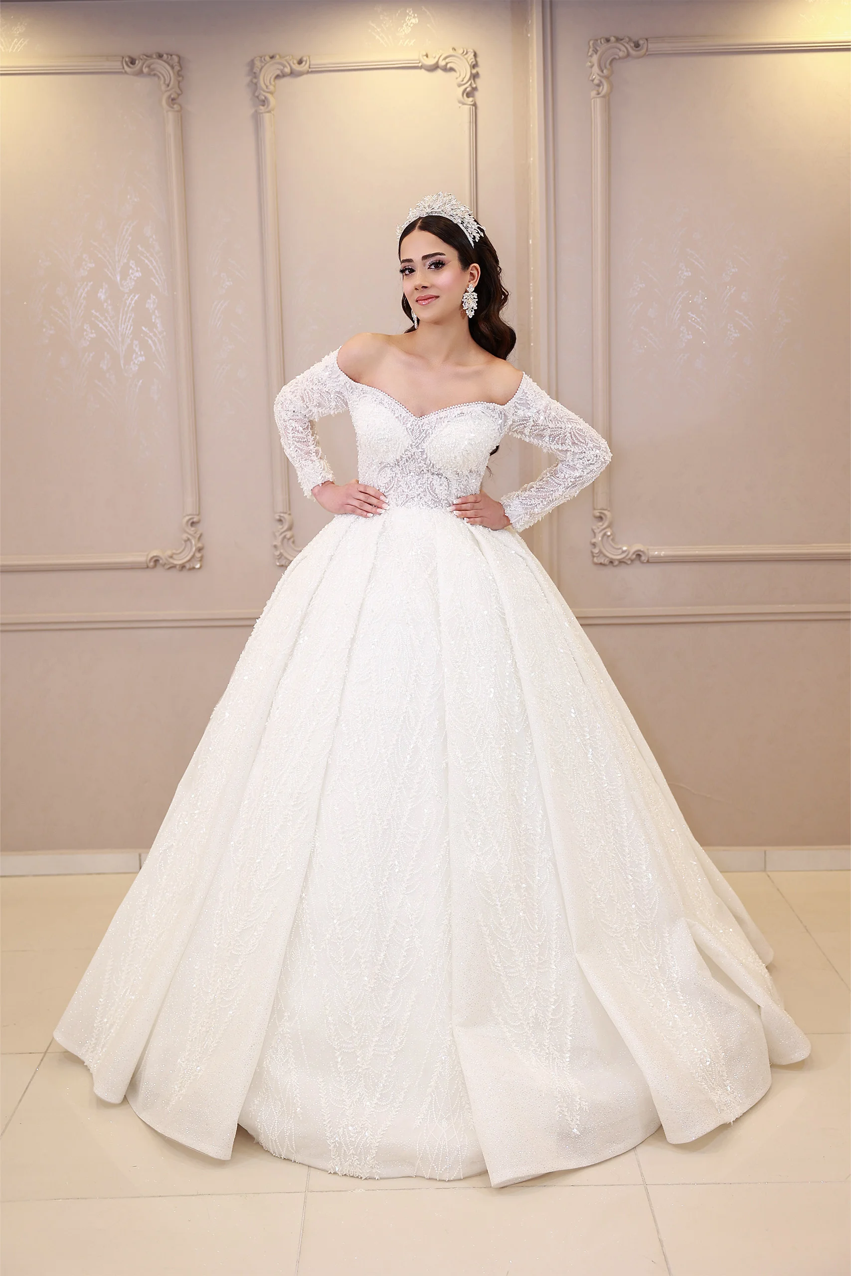 Straplez Uzun Kollu Prenses Model Gelinlik